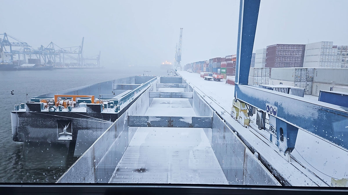 Als je onze socials volgt (bijvoorbeeld Facebook, LinkedIn of Instagram, dan weet je dat wij jullie af en toe vragen om foto’s in te sturen naar onze beeldbank. Onze oproep tijdens de afgelopen winterse periode resulteerde in mooie plaatjes van besneeuwde scheepsdekken en sfeervolle containerhavens. Geniet hier mee van het uitzicht.